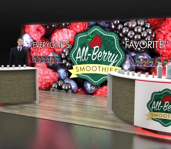 Lightweight frames with tension fabric graphics—big impact, low effort.